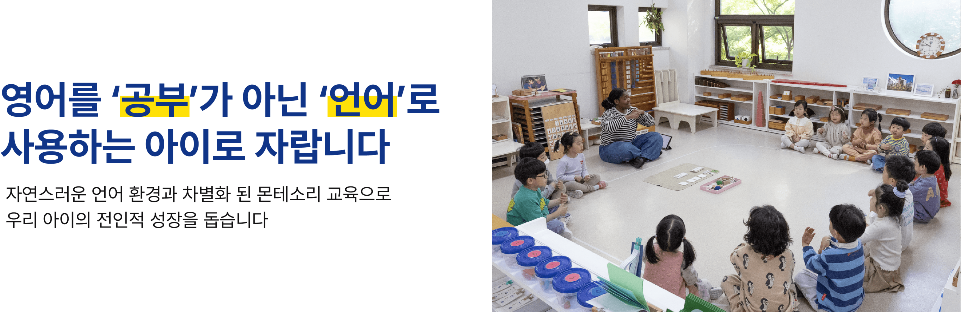 언어 민감기인 유아기에 유아들이 몬테소리 언어 교구들을 통하여 감각적이고 체계적으로 일찍부터 자연스럽게 듣기, 말하기, 쓰기, 읽기 등이 이루어지도록 돕는 영역입니다.